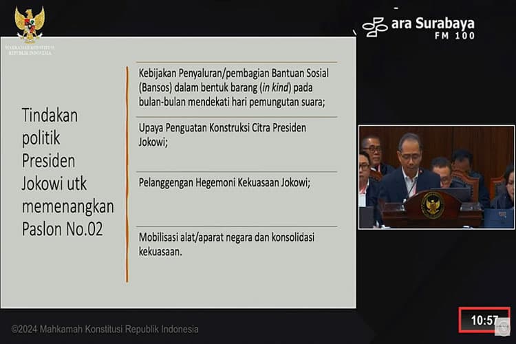 TIMES Mojokerto/Ketua KPU RI Hasyim Asy'ari dalam sidang lanjutan PHPU di Mahkamah Konstitusi, Jakarta. (FOTO: Tangkapan Layar)